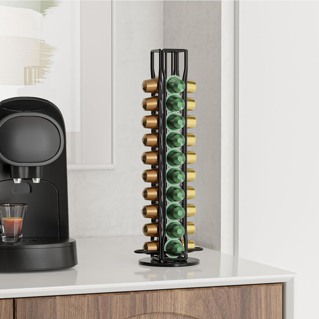 - 360 DEGREE ROTATION: coffee capsules holder spins smoothly with just a touch, very convenient to access your coffee pods from the top or the bottom. Maximize the utility with the smallest area.