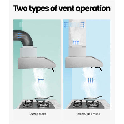 Do you suffer from stifling odours and stubborn smoke or steam from your cooking? Say goodbye to smells and stains with the Devanti 60cm Range Hood. Made from stainless steel with a sleek glass visor, the range hood looks and functions perfectly for a busy kitchen. Featuring a powerful extraction rate of 180m³/hr from a high-performance motor, our stainless-steel range hood will clear the air of smoke, steam, odours and vapours in no time. The non-stick and removable 5-layer aluminium grease filter ensures all grease is efficiently captured. Clear and bright LED lights and a stylish glass visor also provide vivid illumination for your cooking area, so you can see everything you're cooking. Completing the job is a 3-speed fan that can be easily selected with the push button controls. The range hood is easy to install and suitable for 12cm diameter exhaust tubes, standard Australian plugs, and ducted or recirculated exhaust modes. For clean and clear air in your home, you can't cook without a Devanti Range Hood.