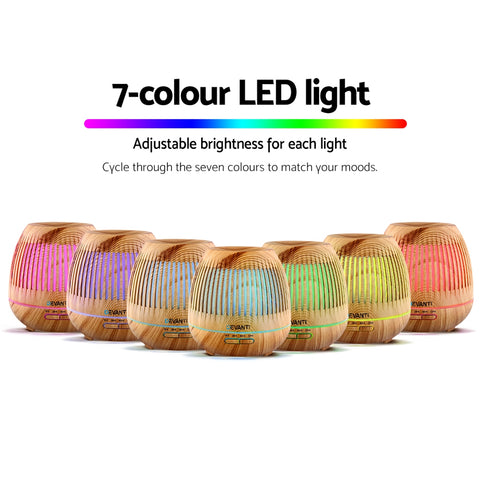 Modern life can be stressful and unforgiving, especially to your health. All the more that you should learn to relax and rejuvenate your senses to face the challenges. And that is where our Devanti Aroma Diffuser can help you, to restore and maintain your aura. With its wood grain design, the diffuser actually performs four functions in one device: humidifier, purifier, night light and aromatherapy. You can set the diffuser to work continuously for up to 12 hours by selecting your choice of intermittent or continuous mist modes. Not least, you can also adjust the level of brightness or select your desired night light colour with its 7-colour LED light to give you soothing hues all through the day or night.