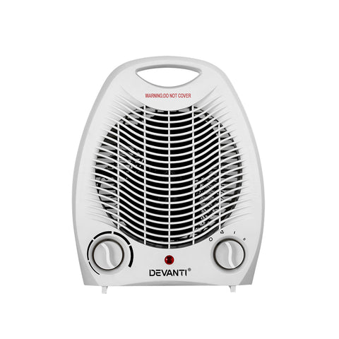 Need a little extra heating to get through winter? The Devanti Fan Heater is here to solve your winter blues. With its high-quality rapid electric wire heating element and fan system, the heater will have you warm in no time at all. It has two heat settings and three unique modes (cool, warm and hot) so you are always at the perfect temperature. Its compact design will fit anywhere from your living room to under your desk, and it features a convenient handle to easily carry your heater from room to room. The thermostat control knob helps you view and maintain the desired temperature. Best of all, the heater has built-in safety features such as a safety cut-off switch in case of tipping and overheating protection. For maximum comfort and warmth through the winter months, you can not go wrong with a Devanti Fan Heater.