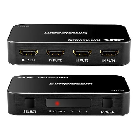 Simplecom CM324 4 Way HDMI 2.0 Switch 4 In 1 Out Splitter HDCP 2.2 4K @60Hz UHD HDR