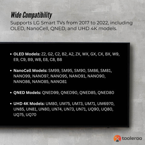 - Wide Compatibility: Supports LG Smart TVs from 2017 to 2022, including OLED, NanoCell, QNED, and UHD 4K models.