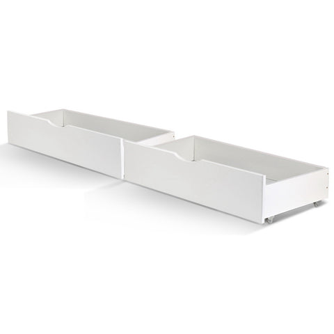 Artiss Set of 2 Single Size Wooden Trundle Drawers - White