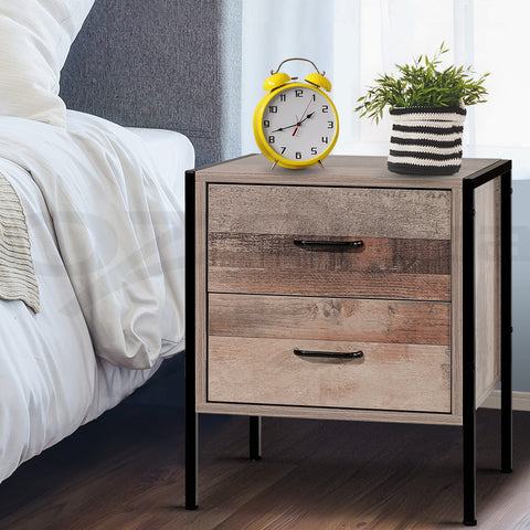 Artiss Bedside Table Drawer Storage Nightstand Chest Cabinet Lamp Side Oak Metal