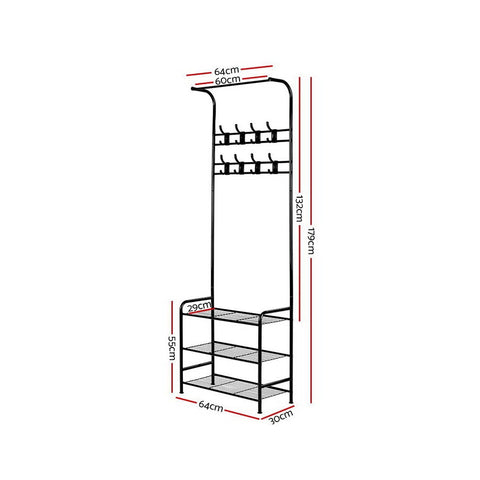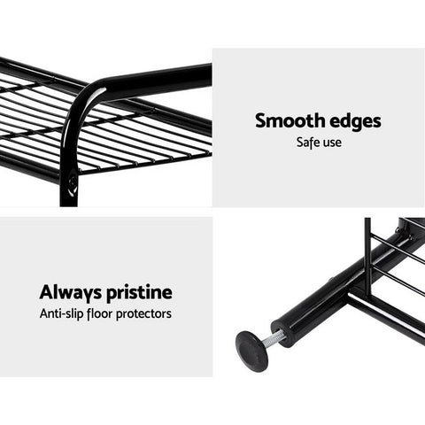 With its stylish black looks, our Artiss Metal Clothes Rack is beyond just a sleek clothes rack. It also doubles as a storage shelving with three tiers of shelves to store a multitude of items, from handbags, accessories to other personal artifacts. Exuding lots of natural class and style, the coated metal frame is simply meticulous in finish and makes for a great furniture piece for any part of your home. Use it as a hallway hanger and the clothes rack is equally at home. And as a shop display, it makes for a stylish visual merchandising piece too. Better still, the rack can handle up to 5kg in weight with each tier capable of holding 10kg and each hook 2.5kg. In other words, the metal clothes rack is as strong and durable as it stands. The clothes rack also comes with eight hanging hooks for more handy use and anti-slip floor protectors to keep your floors pristine and scratch-free.