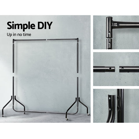 Simple and yet extremely practical. Our black metal clothes rack adds a stylish presence to your bedroom and wardrobe. Better still, its powder-coated steel structure is sturdy and strong with reliable fixings to keep it in shape at all times. With up to 60kg maximum capacity, this clothes rack is no pushover when it comes to hanging all sorts of apparels. And its anti-slip design adds a considerate touch to prevent hangers from slipping off the hanging bar. Not least, its four castors with two that are lockable means that you have this rack anywhere in your home, shop or studio with minimum fuss.