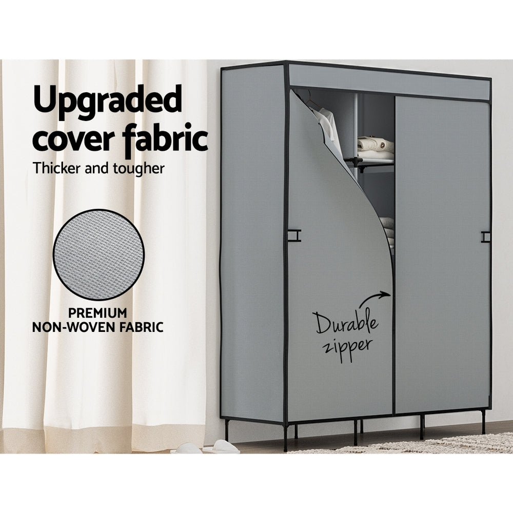 For an easy and affordable furniture solution, look no further than the Artiss DIY Fabric Wardrobe. Made from premium non-woven fabric with a zipper and curtain design, the piece has the capacity of a traditional wardrobe at a fraction of the cost. A sturdy metal frame and non-slip feet keep your wardrobe standing tall and strong, while the water-resistant shelves prevent the growth of mould, mildew and bacteria. Four hanging rods will hold your favourite suits, dresses and shirts, convenient side pockets hold your smaller essentials, and you'll find generous underneath storage space for shoes and boots. Best of all, you can adjust the panels for your individual storage needs. With completely tool-free assembly, it's never been easier to keep your room organized with Artiss.