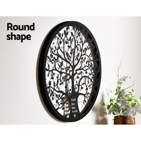 Experience sophistication with this piece of Artiss Metal Wall Art. Crafted from high-quality metal, the wall art is durable and long-lasting, ensuring it will remain a cherished addition to your home for years to come. Meticulously designed, its sleek round shape and metal texture enhances interiors, blending modern aesthetics with timeless elegance. The tree-shaped piece features sleek black branches that support leaves, birds and other flora, with inspiring words carved into the base. Add to any room that needs a relaxing atmosphere or a space filler. The piece is simple to maintain – simply wipe down with a damp cloth. Comes with a wall mounting bracket so you can easily install your art anywhere in the house. Durable and captivating, the Artiss Metal Wall Art is a must-have décor for discerning collectors.
