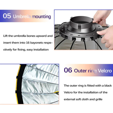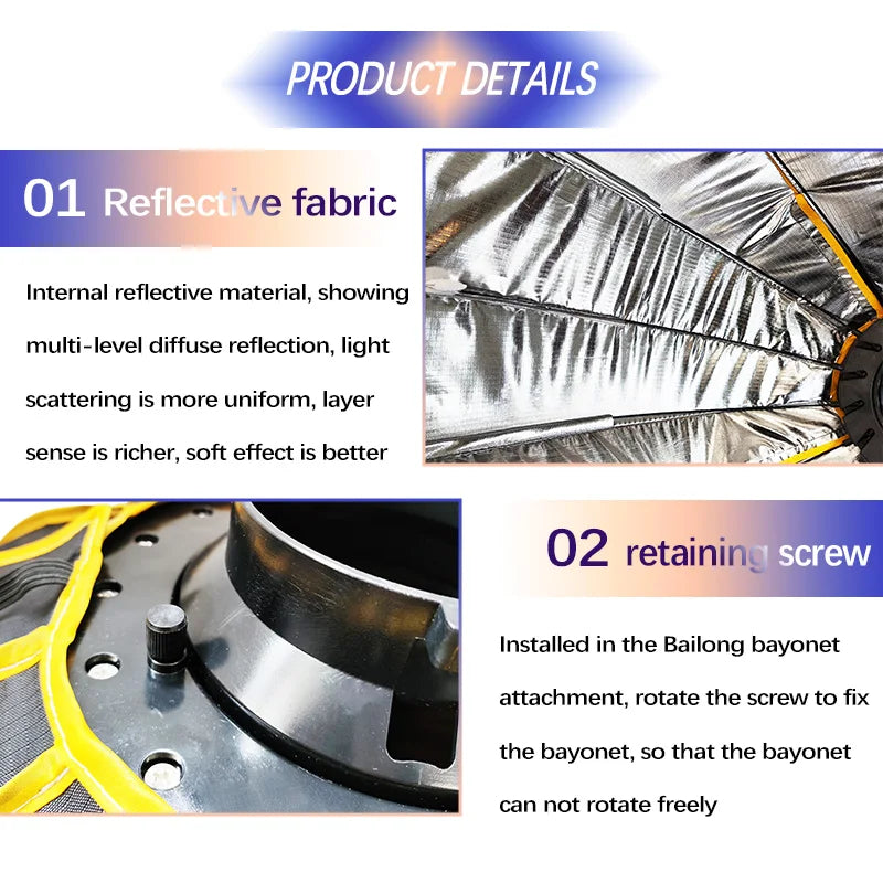 • New improved design: Compared with another softbox, we have improved the size and weight of the grid to make it more stable.
