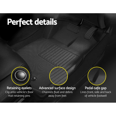 Having a car floor mat that fits well is not just an issue of aesthetics but safety as well, since a bunched-up mat can jam the pedals and put your life in danger. That is why you need our Weisshorn Car Floor Mat to make your life safer and easier too. The mat is compatible for the Mazda BT50 Dual Crew Cab models for total interior protection, as it is custom moulded and laser cut using professional 3D scans. No more trimming universal mats to find gaps here and there. The mat comprises four layers – a wear-resistant thermoplastic rubber top layer, noise-reducing XPE inner layer, High density foam inner layer and floor-gripping bottom layer. The bottom layer holds the mat securely in place without damaging or staining the carpet underneath. To be even more secure, you can use the built-in eyelets to clip the mat onto the retaining pins in your car. Unlike other inferior car floor mats, our mat has no nasty rubber odours and is completely safe for allergy sufferers. Spills are no longer an issue because being waterproof and pressure washable, the mat is easy to wash. There are also channels on the surface that guide fluid and debris away from your feet.