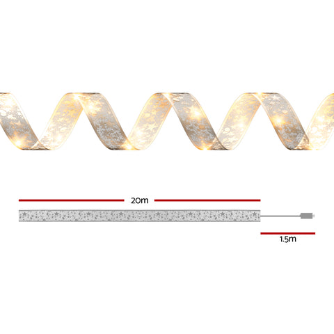 Add a touch of magic to your holiday décor with Jingle Jollys Fairy Christmas Lights. Featuring a stunning ribbon design, these 20M string lights are perfect for illuminating any space with festive cheer. With a working lifespan of up to 25,000 hours and eight enchanting lighting modes, you can effortlessly create the perfect atmosphere. The included controller allows for easy mode switching, while the low power consumption design ensures cost-effective operation. Designed for both indoor and outdoor use, these water-resistant lights come with a 1.5M leading cable for versatile setup, and the safe touch low voltage assurance adds peace of mind. (Note: Plug/Transformer must be placed in dry areas.)