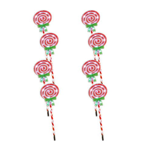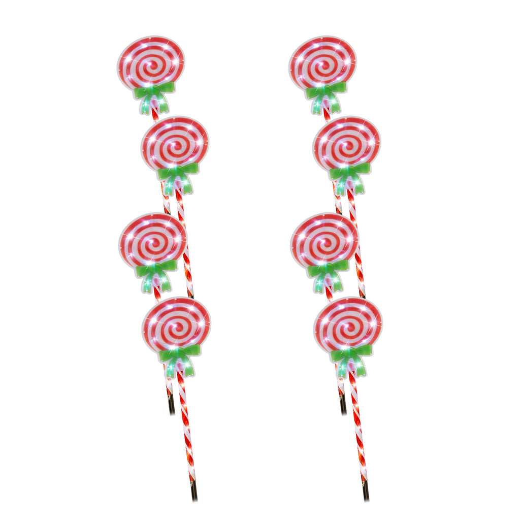 Add a whimsical touch to your holiday decorations with our LED Candy Lollipop Path Lights! This delightful set features vibrant colors and enchanting lighting, perfect for guiding guests through your festive display.