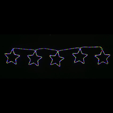 Transform your space with our LED Ropelight 5 Stars Chain! Available in two dazzling color options—Multicolor or RGBYW (Red, Green, Blue, Yellow, White)—this festive lighting solution adds a cheerful sparkle to any occasion. With a total length of 4.3 meters and 36 super bright LEDs per meter, this ropelight features a twinkling effect that brings your holiday decor to life, indoors or outdoors!