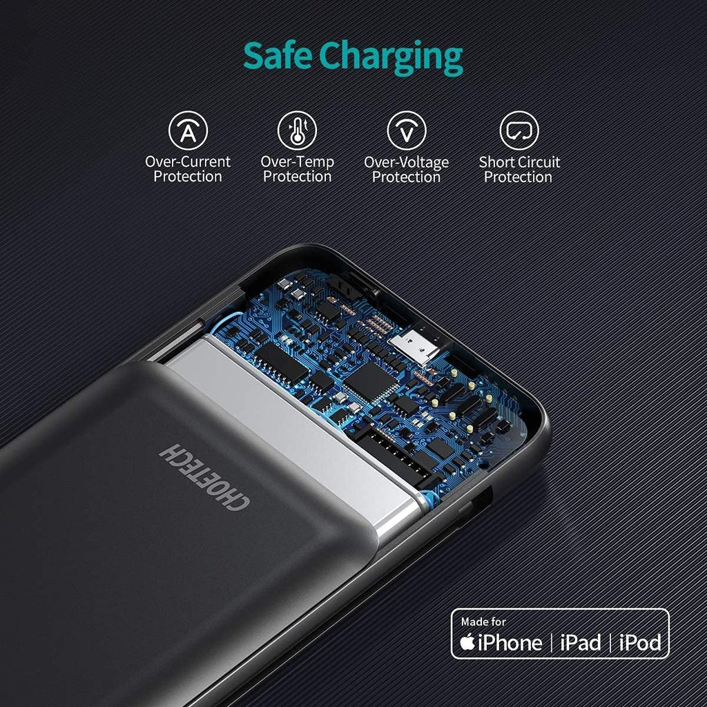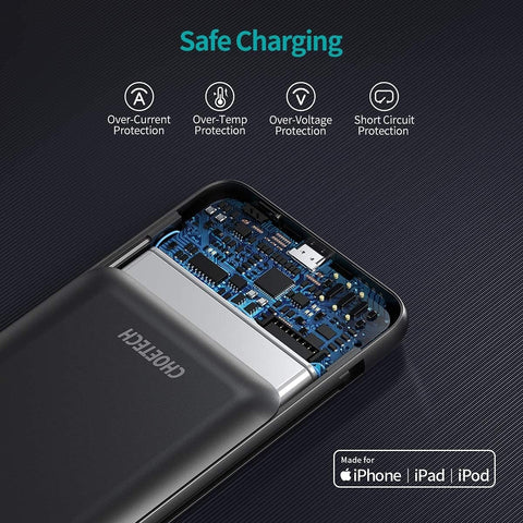 Certified by MFi, ETL, CE, FCC, ROHS, PSE. Intelligent chip set controls main power and output charging current according to your devices, and the portable charger turns into trickling charging when your device is fully charged. Multiple protection systems protect the PD power bank against over-current, over-voltage, over-temperature and short circuit.