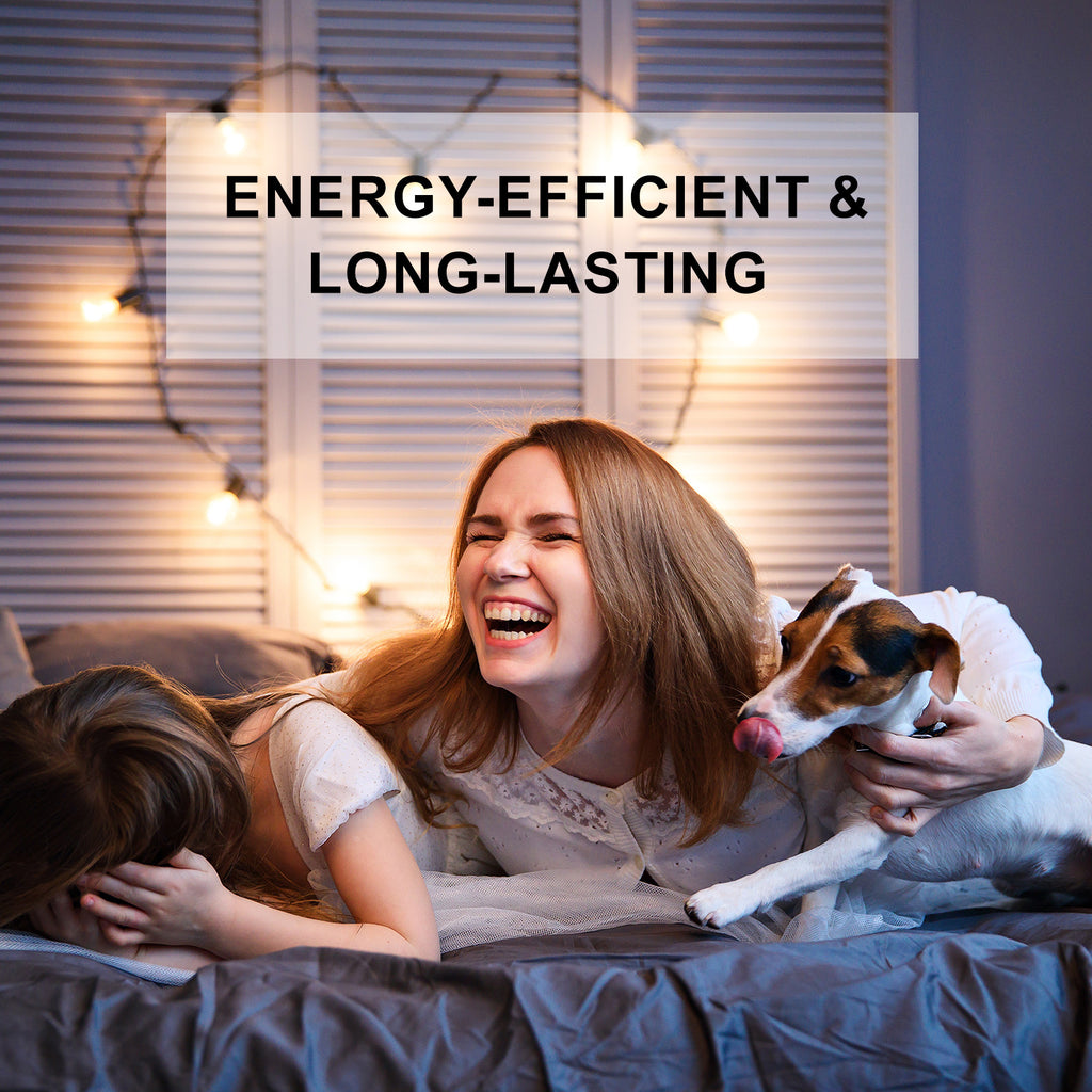 Not least, each bulb has a 20,000 hours lifespan so you can get to use the string lights for quite a while. These LEDs are environmentally friendly, they are energy-efficient as they consume up to 90% less energy than halogens.