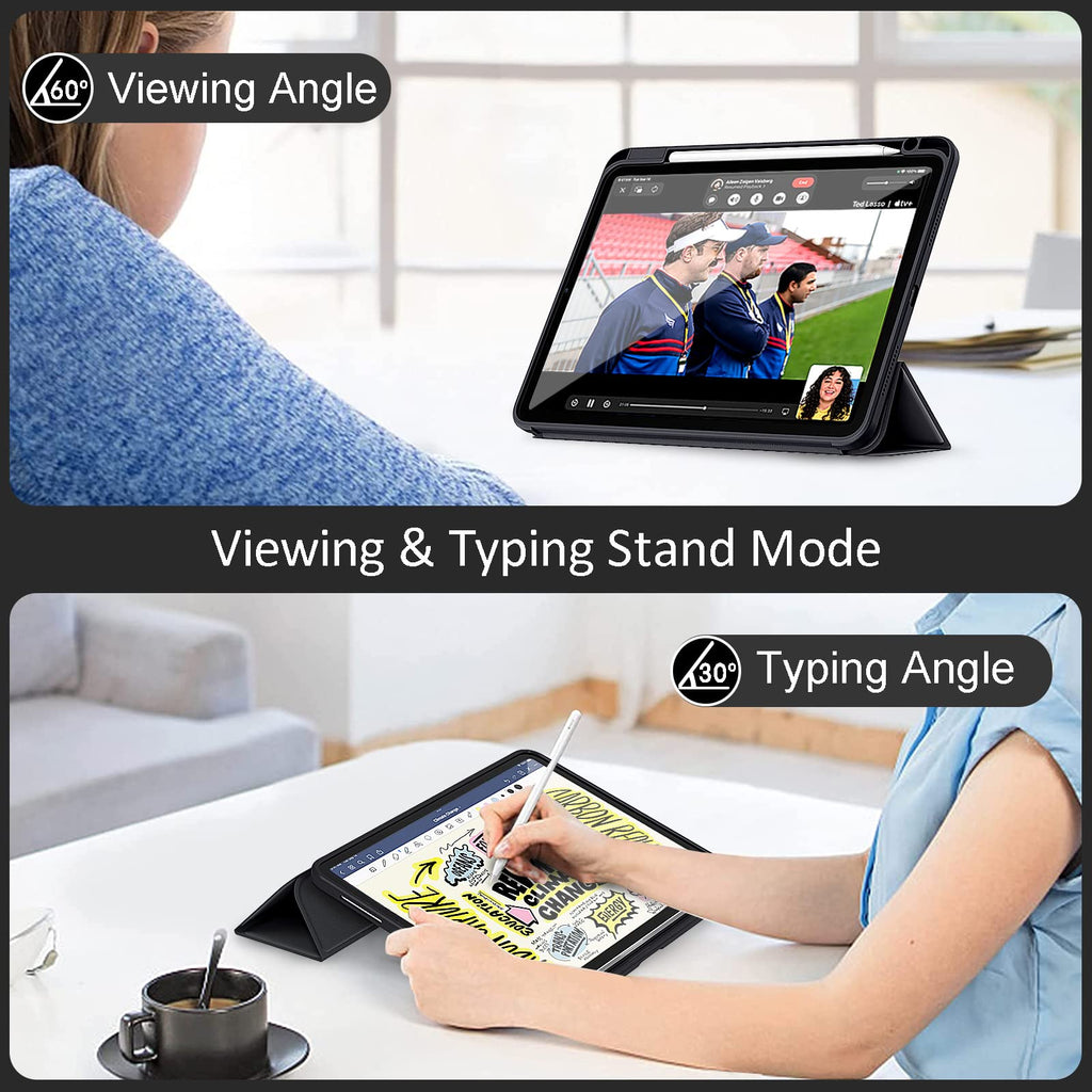 iPad 10th Case 10.9 Inch 2022 with Pencil Holder, Smart iPad Clear Case with Soft TPU Auto Wake Sleep Black