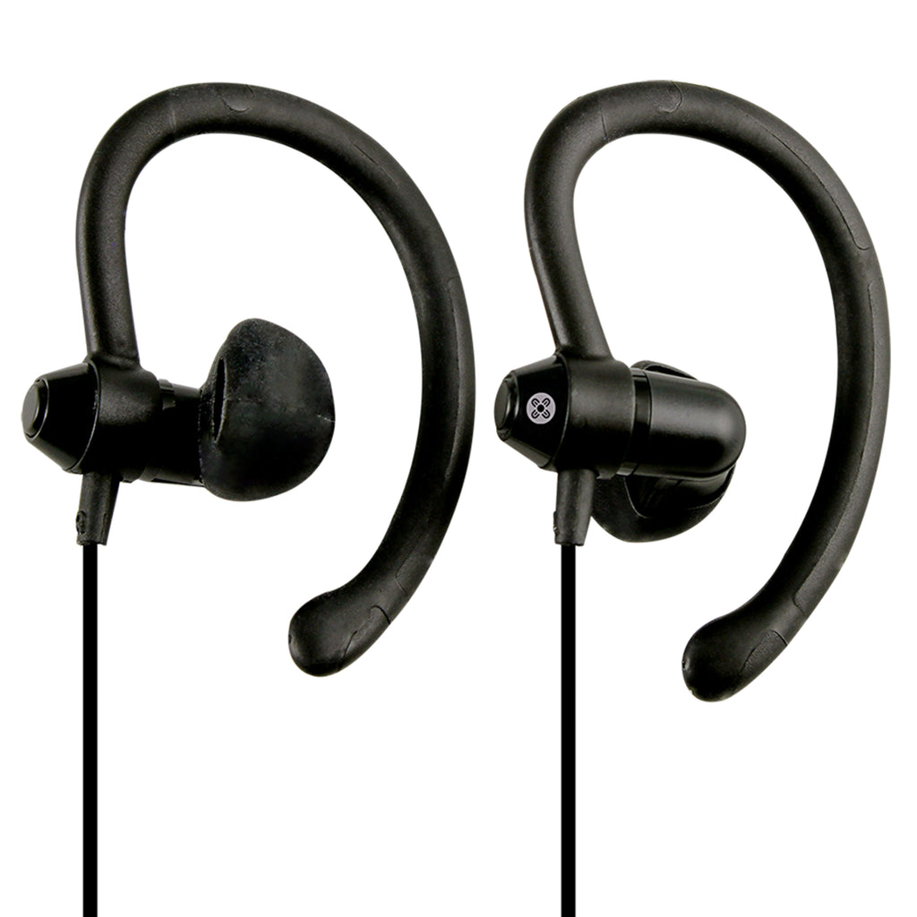 Lightweight, 90° Sports Earphones deliver quality audio performance that will help you keep up the pace at the gym or on the street. Flexible ear hooks provide a comfortable secure fit and stay in place during fitness activities or active training sessions. Uniquely angled at 90° they cannot be forced deep into the ear canal, making them a safer option for high impact training.