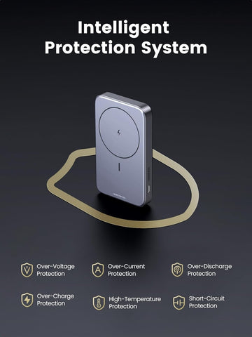 UGREEN Wireless Power Bank can support up to 15W fast charging without connecting any cable; Made of a premium wireless panel and the newest magnetic suction technology, the iPhone Power Bank can ensure perfect alignment and a constant and efficient charge without worrying about slipping off while charging; Power in a snap