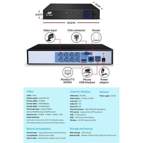 Note: This product require a Hard Drive (not included) to record the video