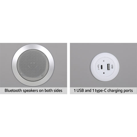 Upgrade your living space with the Artiss Aida Smart Bedside Table. The table allows you to charge your phone wirelessly or via USB, and also contains a Bluetooth speaker to listen to your favourite tunes. Constructed from quality MDF upholstered with premium PU leather and topped with a tempered glass tabletop, the smart table is perfectly stylish and durable. The two drawers feature sleek metal handles and ample storage space for all your night-time essentials. With one USB and one type C charging port, you can charge your devices both wirelessly and wired. Adjust the light-up charging panel to achieve the perfect ambience for sleep. The metal legs will keep your table standing, while anti-slip pads keep the piece in place and protect your floors. Easy to assemble and even easier to maintain, you'll love the style and functionality of the Aida Smart Bedside Table from Artiss.