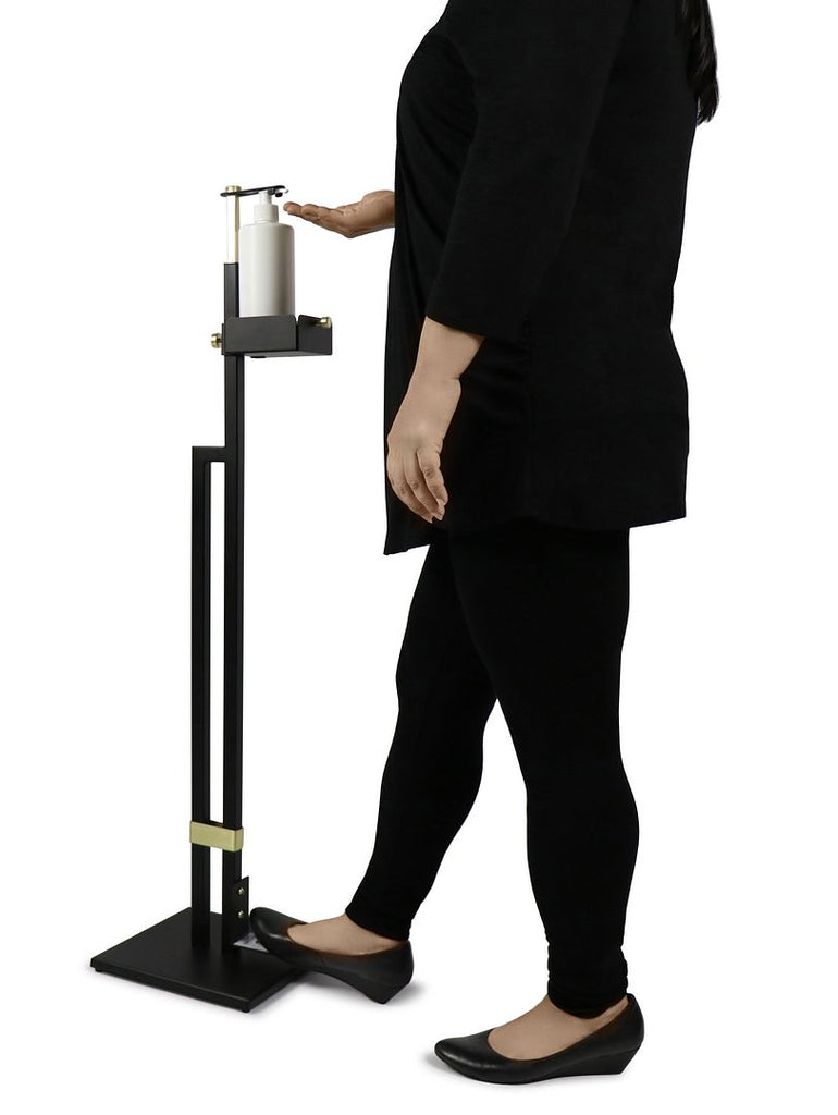 The Lirash Touch Free Hand Sanitiser Dispenser Station Floor Stand Foot Operated - Gold Black makes hand hygiene convenient and extremely easy to implement in both commercial and residential settings. With the flexibility of placing any sanitiser bottle you like, this stand is ideal to make sanitisation accessible within retail shops, workplaces, cafés, restaurants, libraries, medical centres, schools and more.