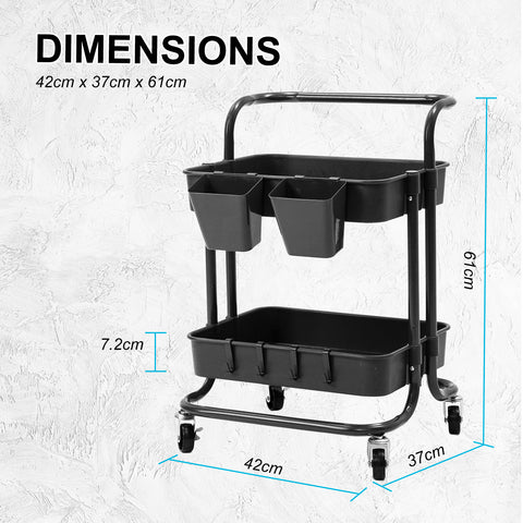Kandoka Trolley Cart Storage Utility Rack Organiser Swivel Kitchen 2 Tier - Black