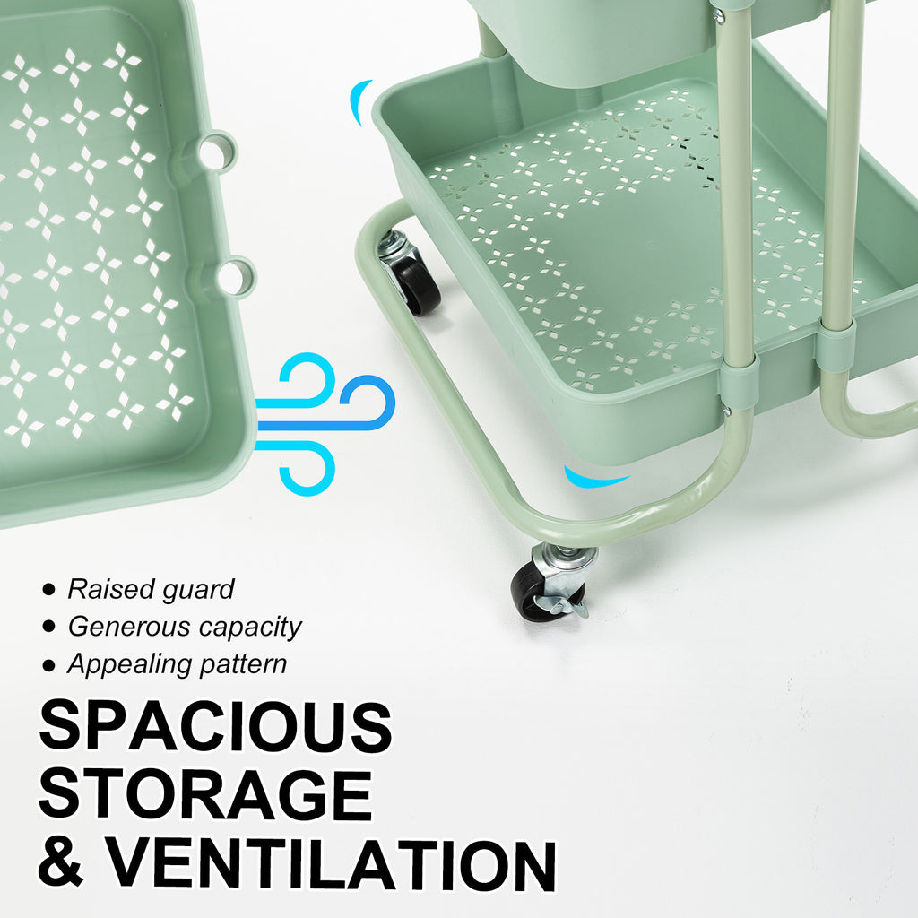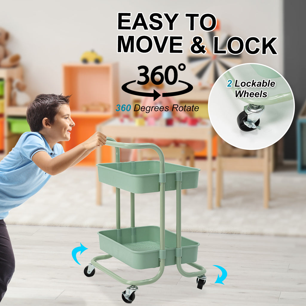 Kandoka Trolley Cart Storage Utility Rack Organiser Swivel Kitchen 2 Tier - Green