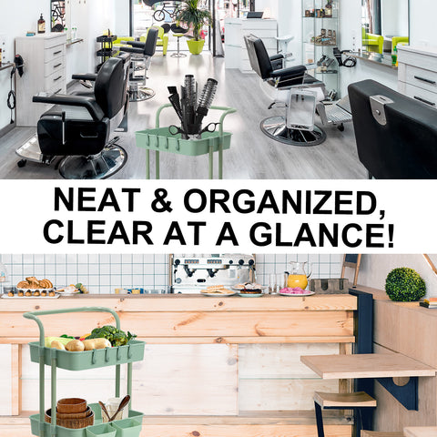 Keep neat, organized, and clear at a glance! Simply roll this trolley cart to where you want that gives you extra storage.