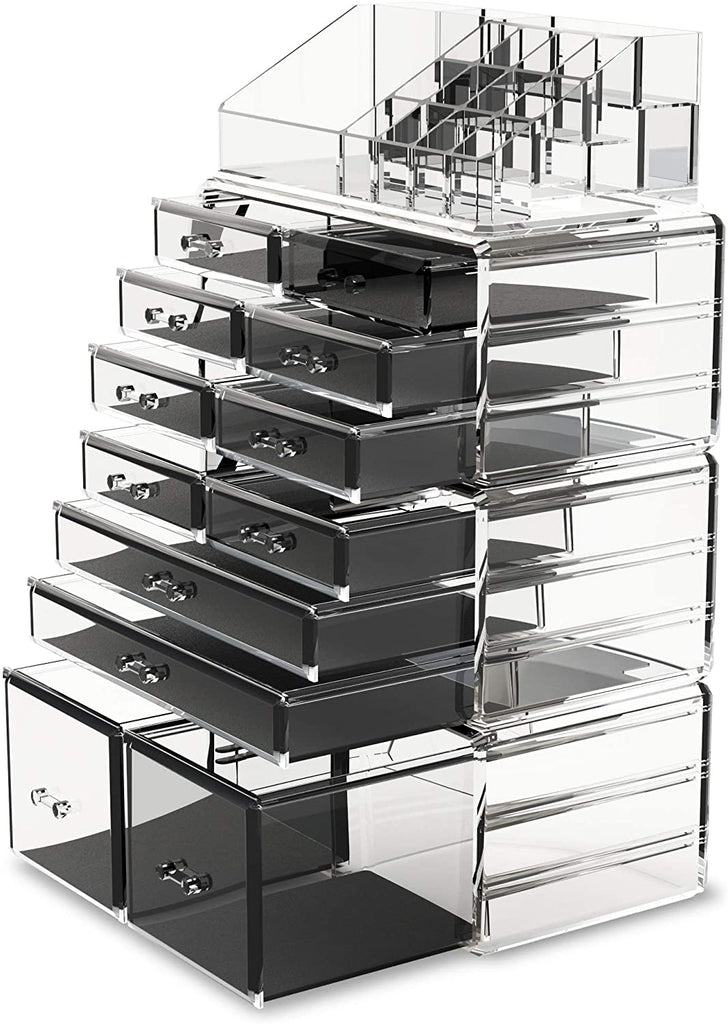 Makeup Cosmetic Organizer Storage with 12 Drawers Display Boxes (Clear)
