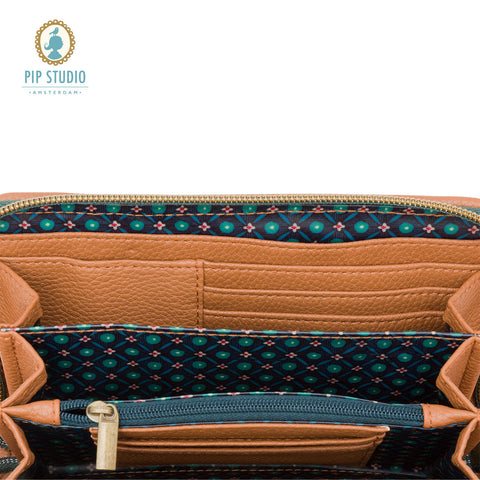 This handy Jacquard Stripe Multi Oblong Wallet by PIP Studio is decorated with the Jacquard Stripe design. This joyful print consists of bright pink, blue, brown, green, red, olive, gold, and yellow colours which are connected by horizontal en vertical stripes. The wallet has extra pockets and a zipper. Also available in the Pip Garden design. This wallet is made from PU, a synthetic material that is a sustainable alternative to leather.