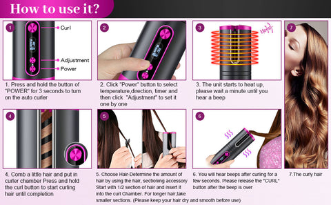 EASY TO USE: One-click automatic curling, no need for any skills, farewell to using traditional wired curling irons, is a perfect alternative to traditional curling irons or curling sticks, ideal new high-tech styling tools for people who create beautiful curls.*In order to prolong the life of the battery, please fully charge it before first using or after receiving the goods.