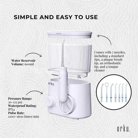 Discover the ultimate in dental cleaning technology with the Orku Oral Irrigator Water Jet Flosser Teeth Cleaner, presented in a sleek design. This advanced oral hygiene tool is engineered to provide a thorough clean for those hard-to-reach areas, ensuring your teeth and gums stay refreshed and clean.