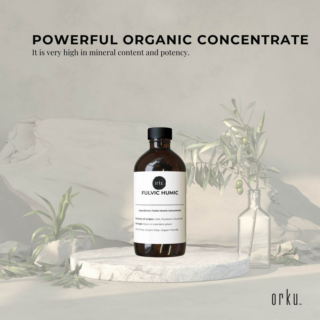 Fulvic Humic Acid Liquid in Amber Bottle with Euro Dropper.