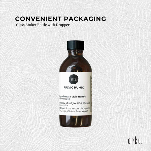 Fulvic Humic Acid Liquid in Amber Bottle with Euro Dropper.