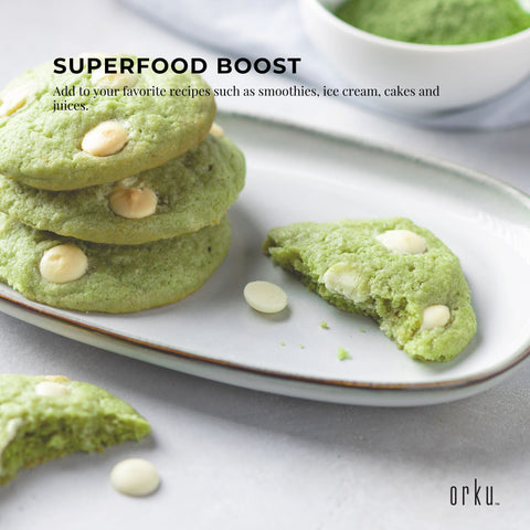 Matcha Powder or Matcha Green Tea powder has a vegetal aroma, a slightly sweet green tea taste and has been used by people for many years for its potential health benefits. Simply add this powder into cereal, smoothies, soups, juices or any cooking you see fit for a Superfood boost.