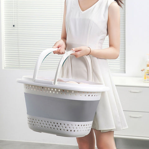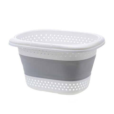 28L Foldable Laundry Washing Basket with Handle Collapsible - Grey/White