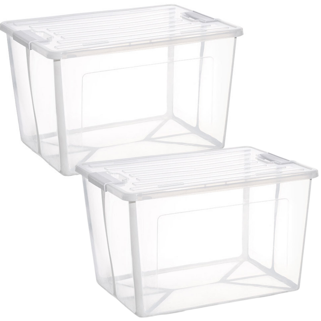 2x 57 Litre Modular Clear Foldable Storage Box with Lid Plastic Tub Collapsible