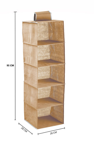 3 Pack 5-Tier Shelf Hanging Closet Organizer and Storage for Clothes (Beige)