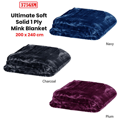 Looking for a warm and comfortable blanket to take with you on the go? Our 375gsm 1 Ply Solid Faux Mink Blanket Queen 200x240 cm is the perfect solution. Whether you're snuggling up on the couch or getting a good night's sleep, our mink blankets are the perfect way to stay warm and comfortable. It features solid colour design in vibrant colour tones that will instantly add colours to your home space. Made from easy care and quality polyester fabric in 375GSM (approx 1.8kg) for long lasting use.