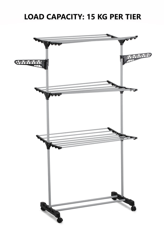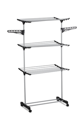 Folding 3 Tier Clothes Laundry Drying Rack with Stainless Steel Tubes for Indoor & Outdoor Home