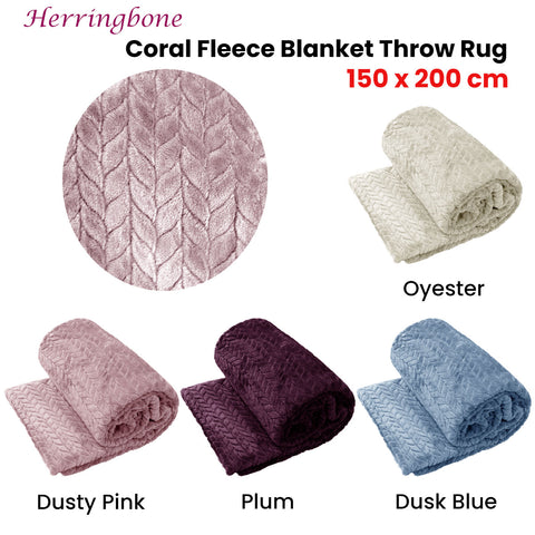 This range of decorative Herringbone Coral Fleece Blanket Throw Rug 150x200 cm will add a stylish touch to anywhere in your home and provide warm and comfort for everyday. It features herringbone pattern in soft solid colour tone for that perfect finishing touch. It is made from durable and lightweight polyester fabric in 330gsm with softness you can enjoy all night long for a relaxing night's sleep.