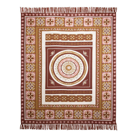The Kasbah Luxury Fringe Throw 130 x 160cm by J Elliot Home is more than meets the eye, its versatility is endless from a throw to a beach picnic rug or even a wall hanging, the opportunities are endless. Inspired by the streets and colours of Morocco. Its bold and brave design elements will make it the centrepiece of any space it resides in. Available in a Pink, Black and Blue multi explore the entire Kasbah range! Made from quality and soft feel Polyester Cotton fabric.