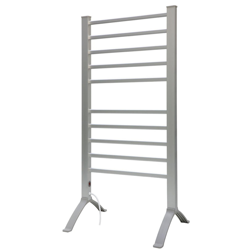 Made with durable aluminum, this electric towel rail is both elegant and functional. It is compact and easy to assemble, with a splashproof, versatile design. It comes with a wall mounting kit and stand, so you can choose the ideal setup for your bathroom. When switched on, the rails maintain a temperature of 45C to 55C, warm enough for the thickest towels but still safe to the touch.