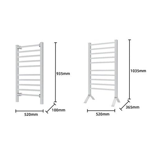 The horizontal design allows for even drying and warming, making this rack energy-efficient. It is also quiet and easy to use, with a waterproof power switch, 1.4m cable and standard Australian plug. And with 10 heated rails, you'll have plenty of space to hang your clothes and towels!
