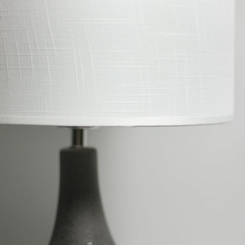 The sleek and curvy Symfonisk Desk Lamp oozes class and style, featuring a conical matte black ceramic base with a fine gloss fleck, supporting a white cylindrical white fabric lampshade that creates a modern noir aesthetic.