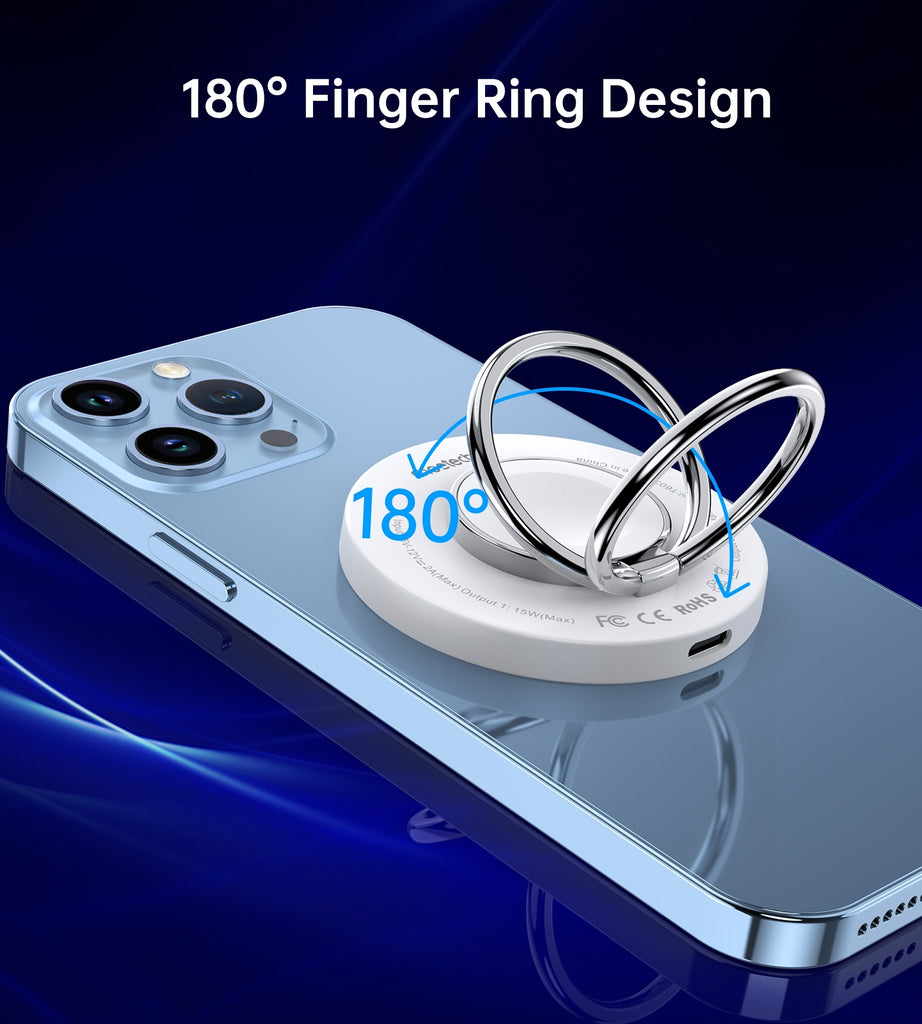 Function Magnetic wireless charging, perfectly compatible with iPhone 12/13/14 or newer model series 2 in 1 Design: Charge your iphone 12/13/14 or Airpod and iWatch at the same time. Compatible with charging iPhone, AirPods or Apple Watch Foldable ring buckle design, easy to operate, more convenient to read and watch Compatible with 15W, 10W, 7.5W, 5W, 2.5W at the same time, more stable performance