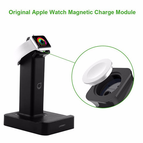 Currently most charge dock for Apple Watch in market is just a stand, and you could not charge your watch until install your original magnetic charge cable into it. However, Ugreen MFi certified charging stand is with built-in integrated magnetic charging module for Apple Watch. You can start inductive charge for your watch directly, and save your original magnetic charge cable for travel.