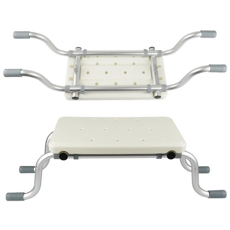 • Enhanced Safety Features: Equipped with a non-slip handle and drainage holes on the PE plastic stool surface, our Adjustable Aluminium Bath Bench ensures a secure and stable seating experience, reducing the risk of slipping and accidents in wet bathroom environments.