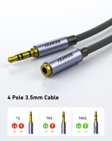 This TRRS (4-pole) headphone extension cable extends your 3.5mm audio connection while preserving full stereo sound and microphone functionalityunlike standard TRS (3-pole) cables that only support audio.