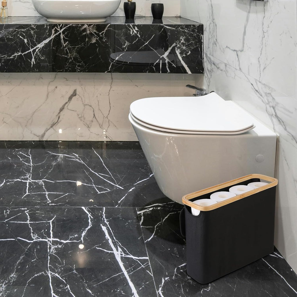• LARGE STORAGE CAPACITY: This slim basket holds up to 12 regular toilet paper rolls or 9 jumbo rolls, helping you stay fully stocked and organized. A perfect fit for small bathrooms, closets, RVs, or under-sink spaces.